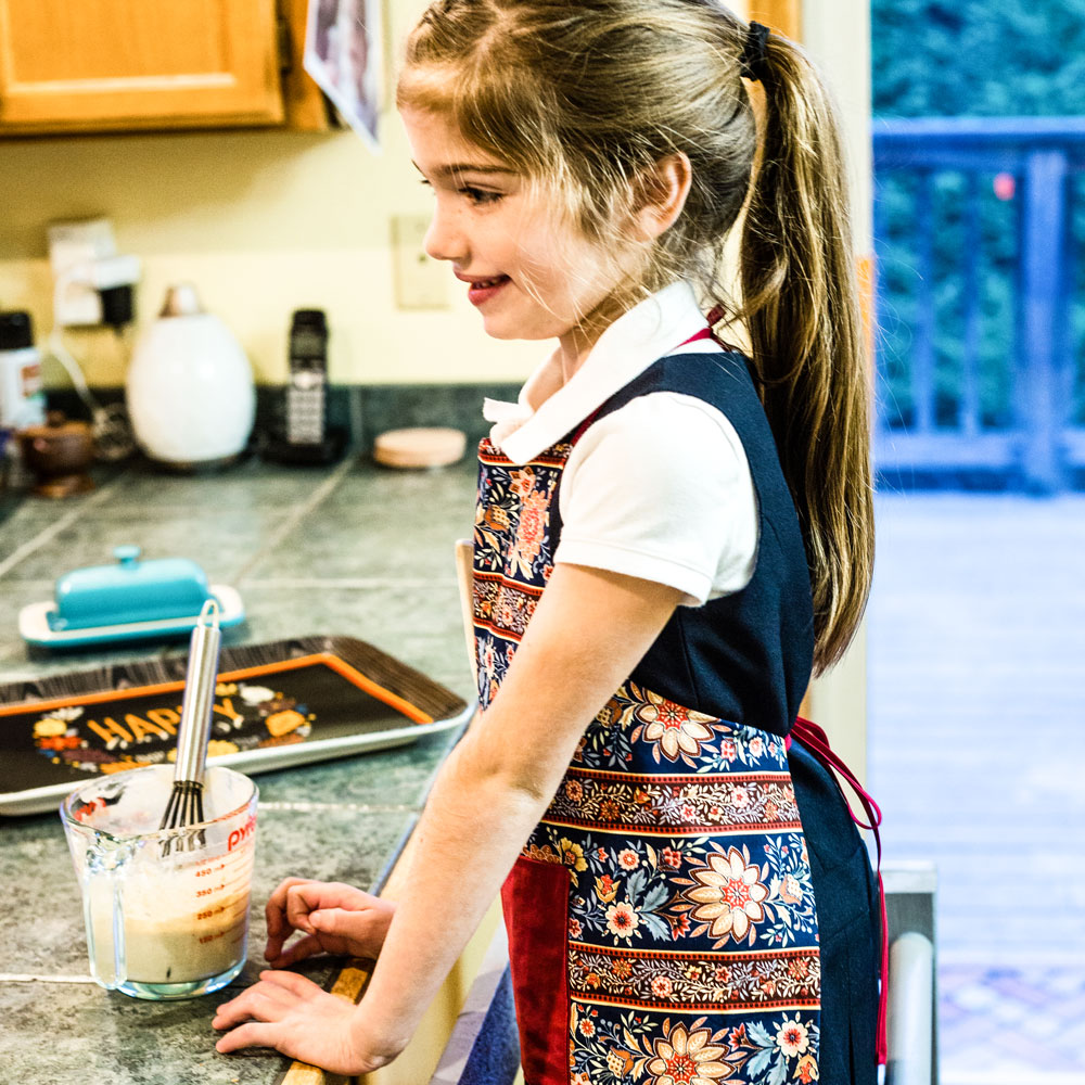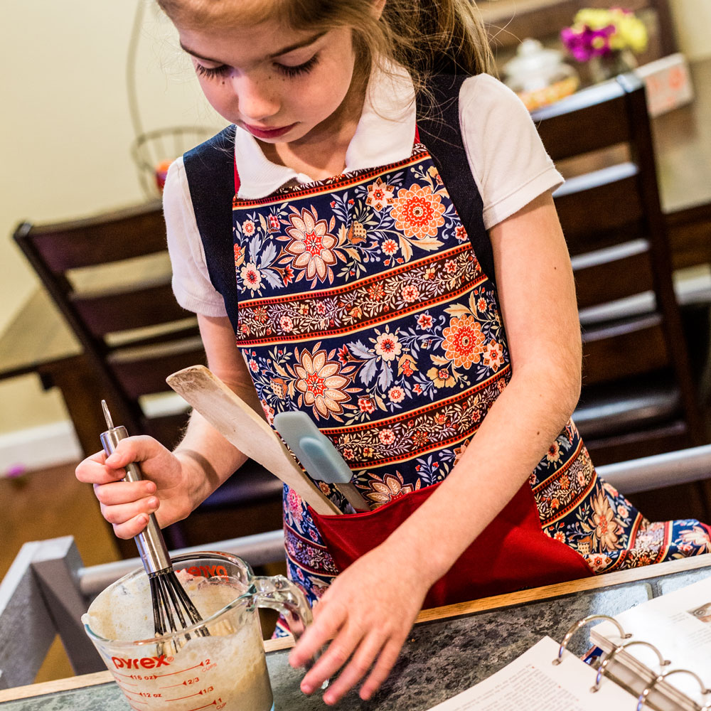 This adorable kid’s apron uses quilting cotton and can make these cooking memories so much sweeter. These aprons also make perfect little gifts. The apron pattern includes an optional ruffle or front pocket. See some more inspiration below.