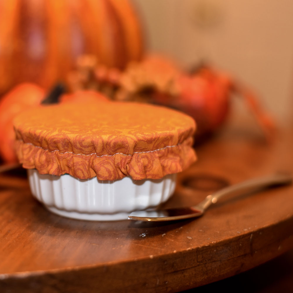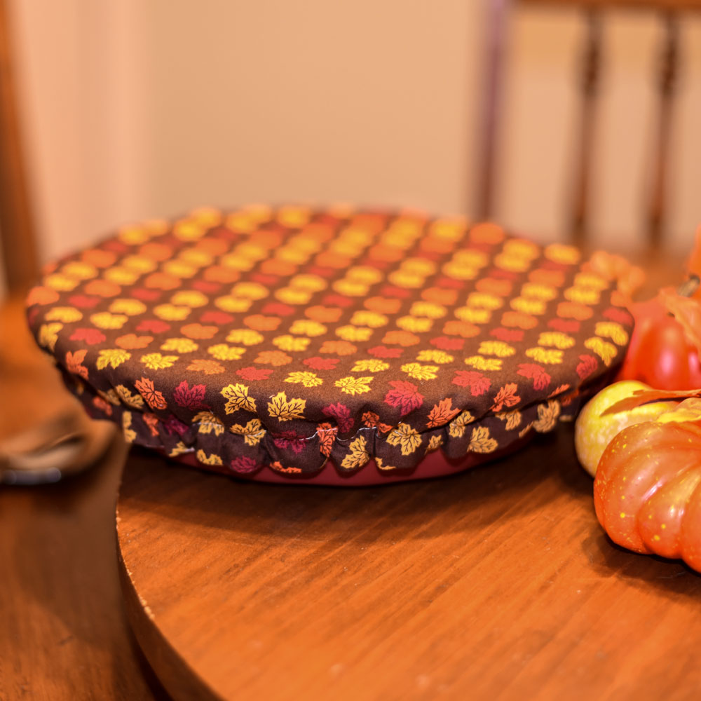 Next for this week’s Festive Friday is the Mamma Can Do It’s Reusable Dish and Bowl Covers Pattern. These washable and reusable dish and bowl covers are great during the holidays for gift giving or for bringing that extra special touch to family mealtimes. They really help set the mood with vibrate colors that plastic wrap and tin foil just can’t do. Then you can also feel good about being eco friendly. The littlest cover is perfect for our Thanksgiving butter dish and the larger size is going to be a great way of keeping those yummy handmade rolls warm and delicious.