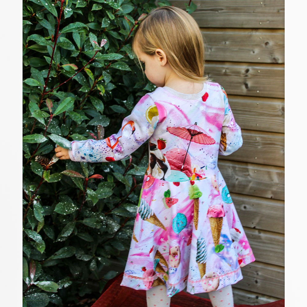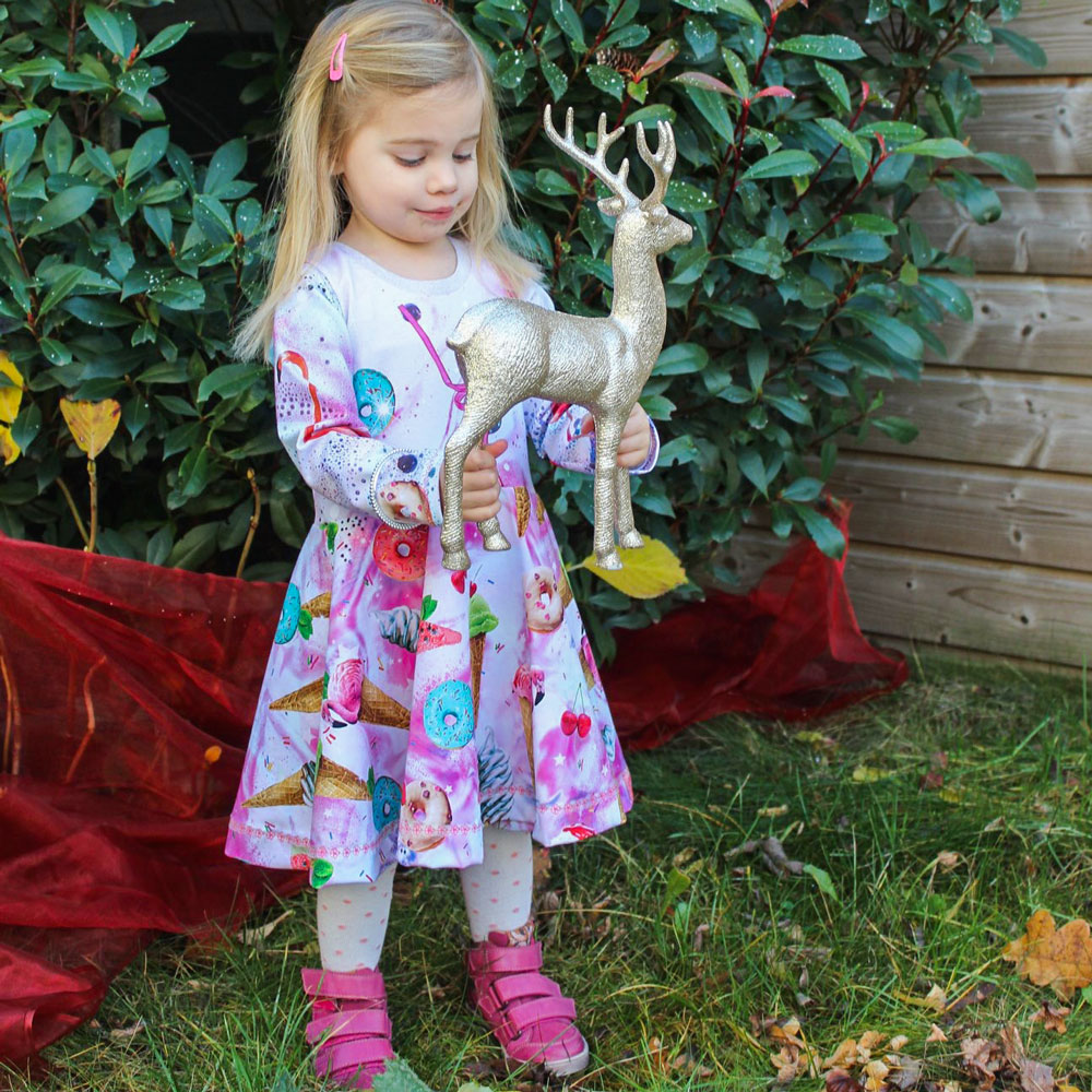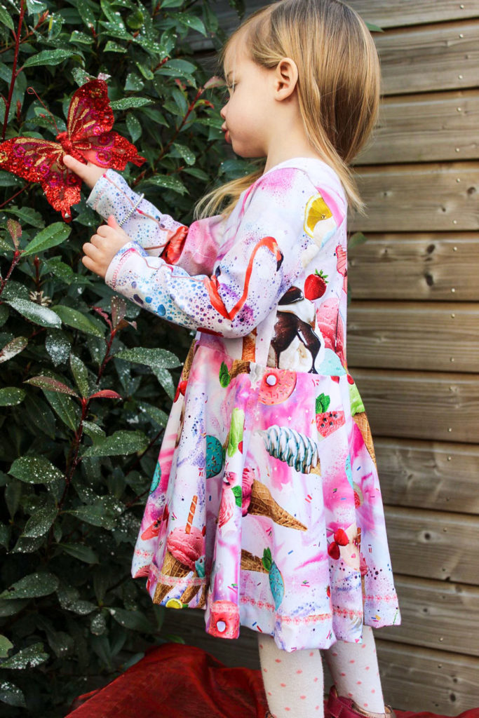 The Joyful Jumper is a woven fabric pattern and as such it is a great project for beginners. You can make it with buttons or snaps (my favorite snaps are KAM snaps). This is one of our newer patterns so it comes with layers for easy size printing, different file print formats (8.5×11″, A4, and copy shop A0), and as always a clear step-by-step picture tutorial. The Joyful Jumper is also reversible which is great for kids and babies alike because if one side gets messy and you are on the go, you can just turn it to the other side and you have a whole new outfit! The ruffle is optional, but it looks oh so sweet. You can make it as a top (high/low hem included) or as a dress. This pattern also has the option for pockets! See more inspiration below.