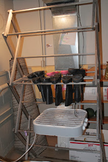 I have a large clothes drying rack that I bought at our local Amish store. I think I paid $30 for it, but I’m sure that you can get one for cheaper if you are looking at using it strictly for boots.
