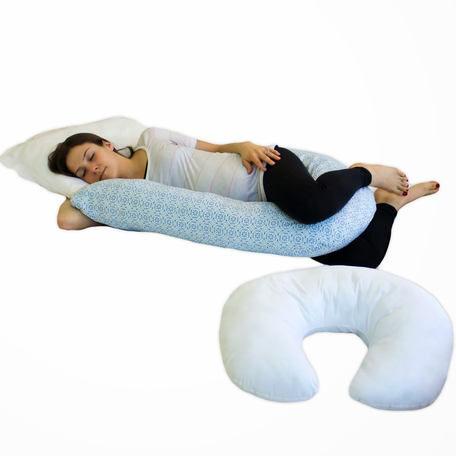 The next thing that I got hung up on was the shape of the pregnancy pillow itself. I loved the shape of the pillow that I had made with my original pregnancy pillow pattern, and I simply didn’t want to change it. How and why would I split it into two pieces?
