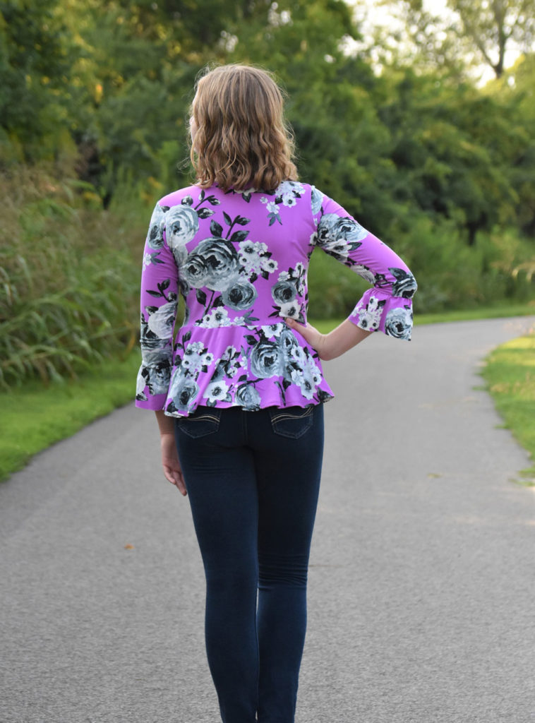 This type of peplum is great if you are heavier in the hip or bottom like I am post kids. It helps draw the eye to the smaller waist and the circle hugs your hips which creates a very pleasing hourglass figure.